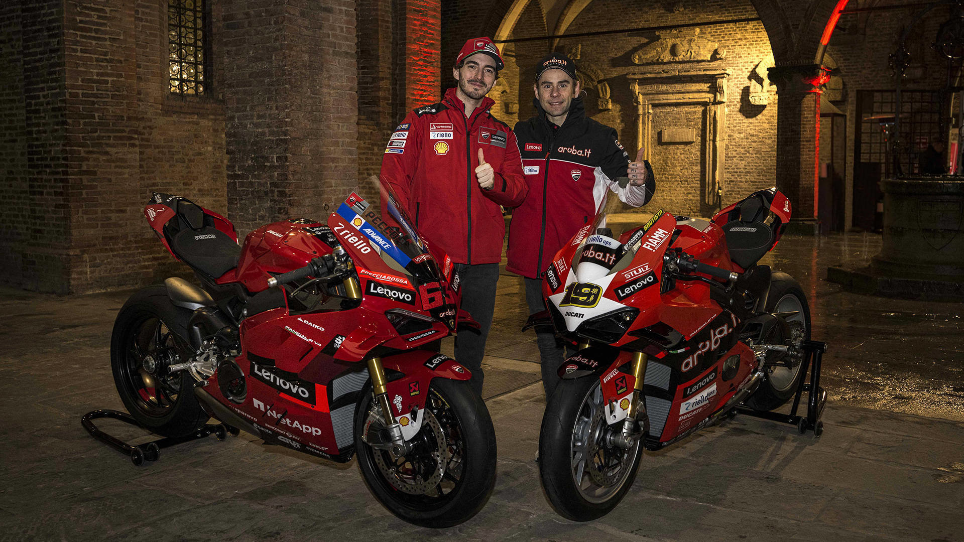 世界冠军杜卡迪 Francesco Bagnaia 和 Álvaro Bautista 的 Desmosedici GP 赛车和Panigale V4 R 受赛车的启发,创造了两个特殊的赛事 Panigale V4 为了庆祝杜卡迪的车型 MotoGP 和 WorldSBK 双冠荣耀。两款特殊赛事车型 “Campioni in Piazza2” 庆祝派对首次亮相,并与杜卡迪粉丝一起庆祝这一历史性的双冠荣耀。