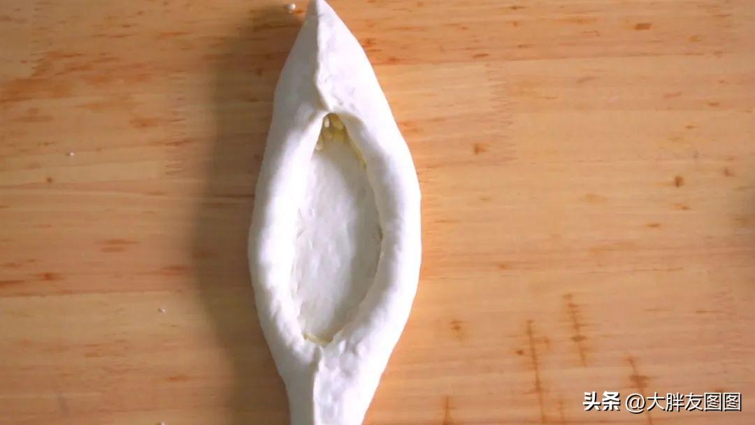 最宽的两面朝中间做卷边,这样的船型披萨胚出来了。
