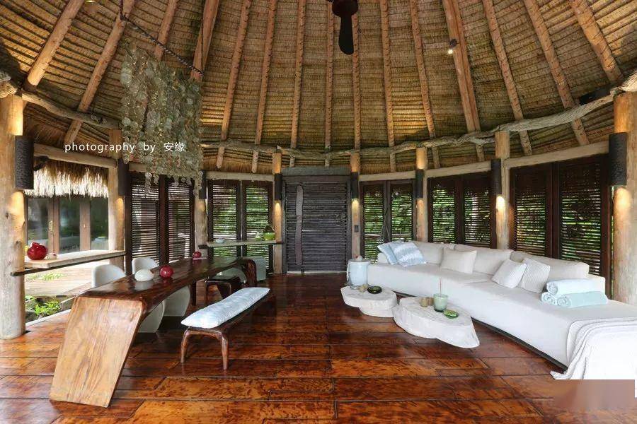 North lsland Resort的设计是源自“赤脚天堂”的定义,大量的纯木质家具、棉布帐篷、麻制靠包、石头和珊瑚制成的饰品装饰了整个空间,质朴、纯质到甚至让你会觉得过于平凡了。