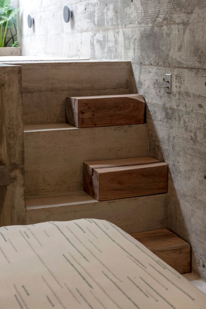 建筑外立面由粘土、砖块、木材和混凝土组成, 室内材料则融 合了粘土和沙子,与门窗的木质框架和墨西哥设计师 Oscar Hagerman 设计的定制家具融为一体。