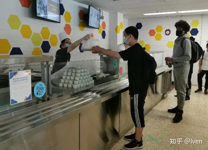 为应对疫情,学校取消了午餐自助的形式,食堂工作人员将把所有餐食打包好,发给学生,保证绝对的安全卫生。