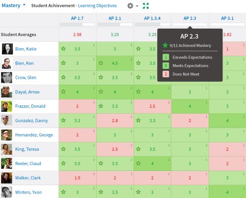 追踪学生的表现和参与度。通过课程分析和学生掌握报告跟踪学生参与度和表现,并且与预先设置的目标(共同核心,NGSS等)和自定义学习目标进行对比。这些数据使教师能够做出明智的决定,甚至在测试或测验后提供即时反馈。