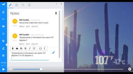 学生记录笔记,在任何视频讲座中学习者可以标注时间,实时追踪,搜索和导出笔记;