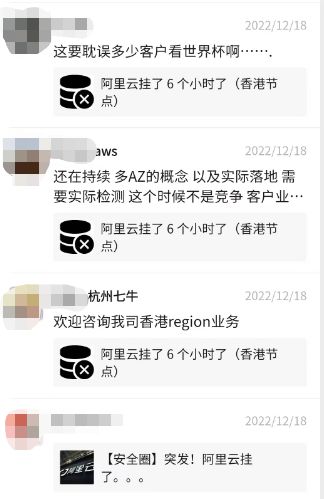 阿里云香港区于2022年12月18日出现故障,多个香港和澳门的网站受到影响,包括Linux中国的官网(https://linux.cn/)、