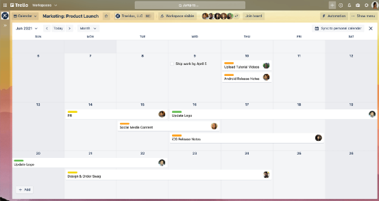 除了基础的看板视图外,Trello还提供了日历视图、时间线视图、仪表板视图、地图视图以及工作区表格视图。通过多种类型的视图,我们可以更直观的了解每个任务的状态和整体的工作进度。