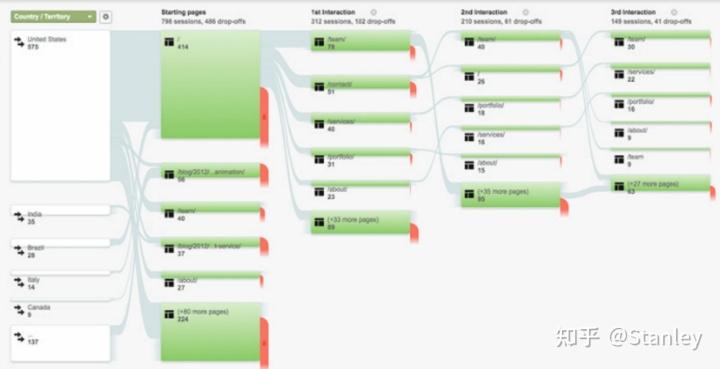 Google Analytics用户习惯操作流图(谷歌分析)可以清楚地看到用户每一步操作的概率
