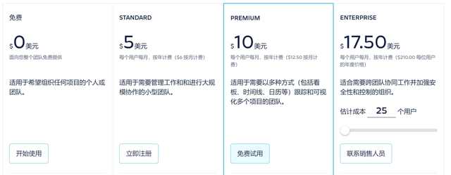 虽然被Atlassian 收购之后,Trello的巨大部分基本功能都免费了,但这依旧是个付费软件。它的具体资费情况如下: