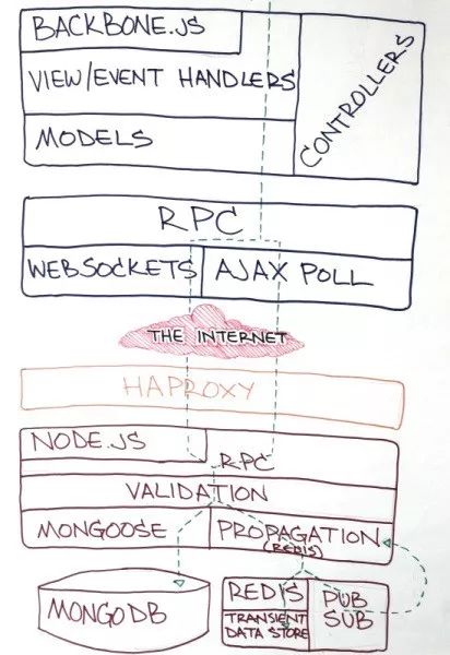 他们基于Node来搭建自己的服务器,并且用MongoDB来存储数据,这样web 应用程序的加载就可以很快。每次用户拖动卡片到新列表或者改变看板的条目时,Trello都会将数据推送到其他所有的浏览器。