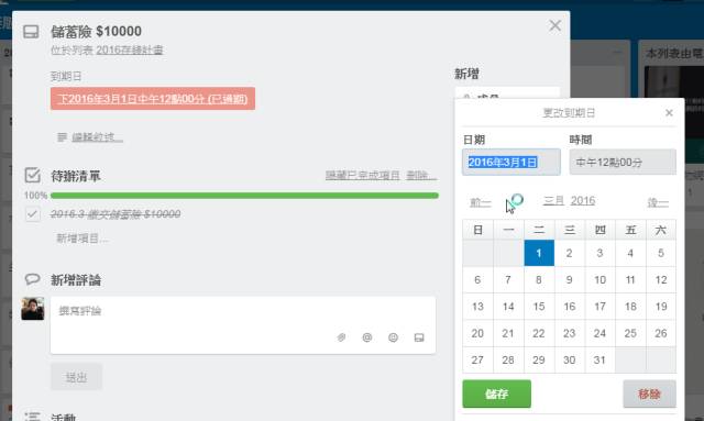 以上,就是我用 Trello 完成的年度理财计划,在网页版与 Trello app 版中都能顺畅使用,推荐给大家,欢迎大家一起来讨论 Trello 的创意用法。文章授权转自電腦玩物,原文链接:http://www.playpcesor.com/2016/07/Trello-Manage-Your-Money.html