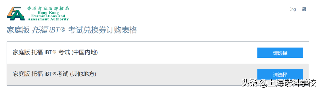 步骤2:前往香港考试及评核局(HKEAA)官方网站订购家庭版托福 iBT 考试兑换券