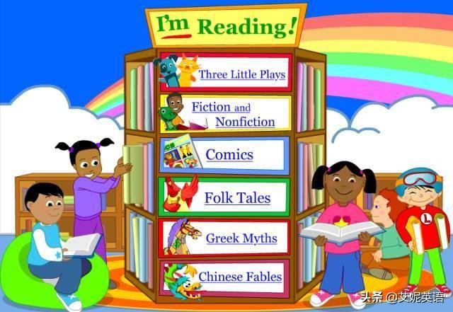 Im Reading真正进入阅读阶段,这里提供几十本有声书,以供小朋友阅读,对国内低龄儿童难度较大,需要有一定的单词量和基本语法基础。在Starfall Free App上这部分没有找到,在网页版上可以进入,有6个主题,分为:舞台剧、小说类和非小说类故事、漫画书、民间故事、希腊神话和中国语言,并且有一些拼字游戏帮助单词和句子的记忆。但是在Pad上没有的这部分,可以用Talking Library替代,里面包含了20几个小说和非小说类故事。