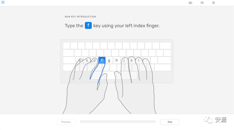 它从最容易记忆的按键开始,孩子逐渐就熟悉了每个手指所对应的字母按键,难度一点点升级。按对了会显示绿色,按错了会显示红色。