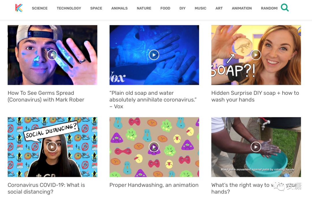 这个网站是最近英国家长们广泛推荐的科普视频网站,我捡到了宝!它是由许多老师和家长一起从油管上精选的4300多个最适合孩子观看的视频,包括科学启蒙、历史、时事、创意等等。在“科学”栏目下,还有很多和这次新冠病毒有关的科普教学视频。