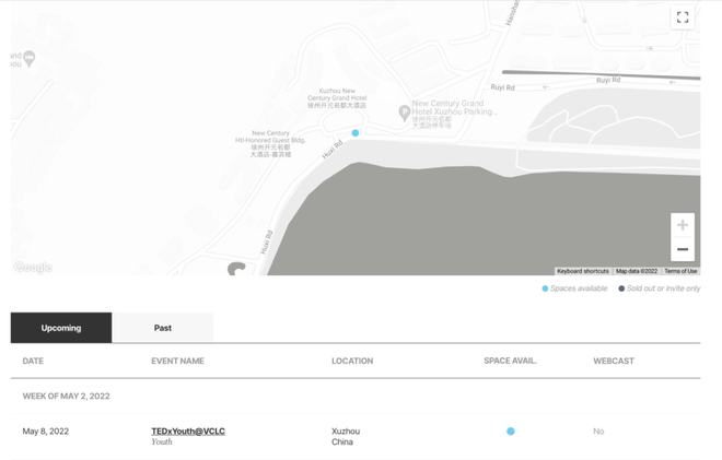 本次活动在TED官网的活动时间备案 图片来源于TED官网