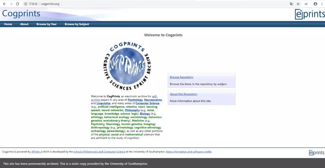 CogPrints(认知科学论文存档服务),由英国南安普敦大学电子与计算机系开发的认知科学开放存储库,收录包括生物学、计算机科学、神经科学、语言学、哲学、心理学等学科领域相关期刊论文或作者自己的学术研究。