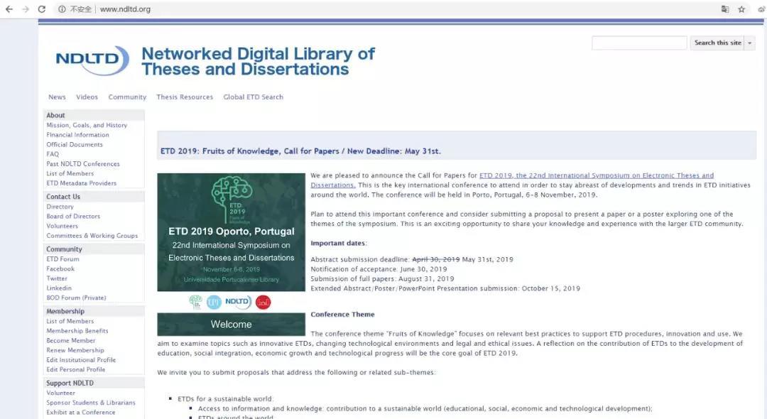NDLTD(Networked Digital Library of Theses and Dissertations)是一个开放的联盟,目的是创建一个支持全球范围内电子论文的创作、标引、储存、传播及检索的数字图书馆,以此来促进研究生教育。提供包括NDLTD成员单位和其他组织的电子版博硕士学位论文的检索统一入口。