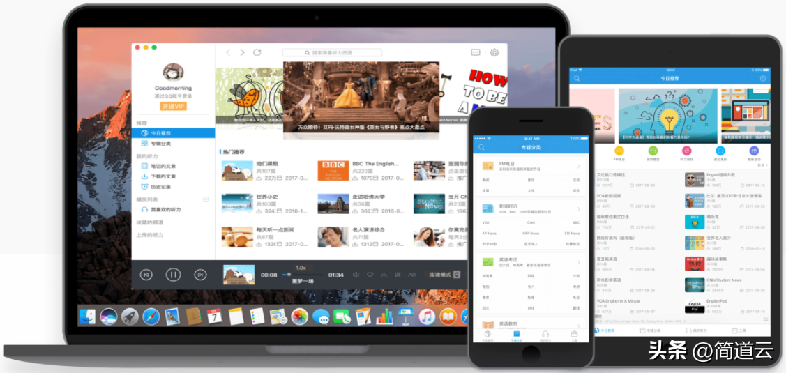 对于想要需要学习或者继续提升英语能力的朋友也是非常好用的软件:提供海量单词本,协助你制定单词学习计划,还提供每日一句/每日英语听力/生词笔记,可以设置发音,任你喜欢美音还是英音。