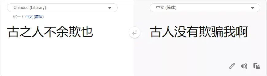 为了解开心中的疑惑,机哥专门挑选了一句话翻译成文言文,再将得出的结果翻译成文言文。