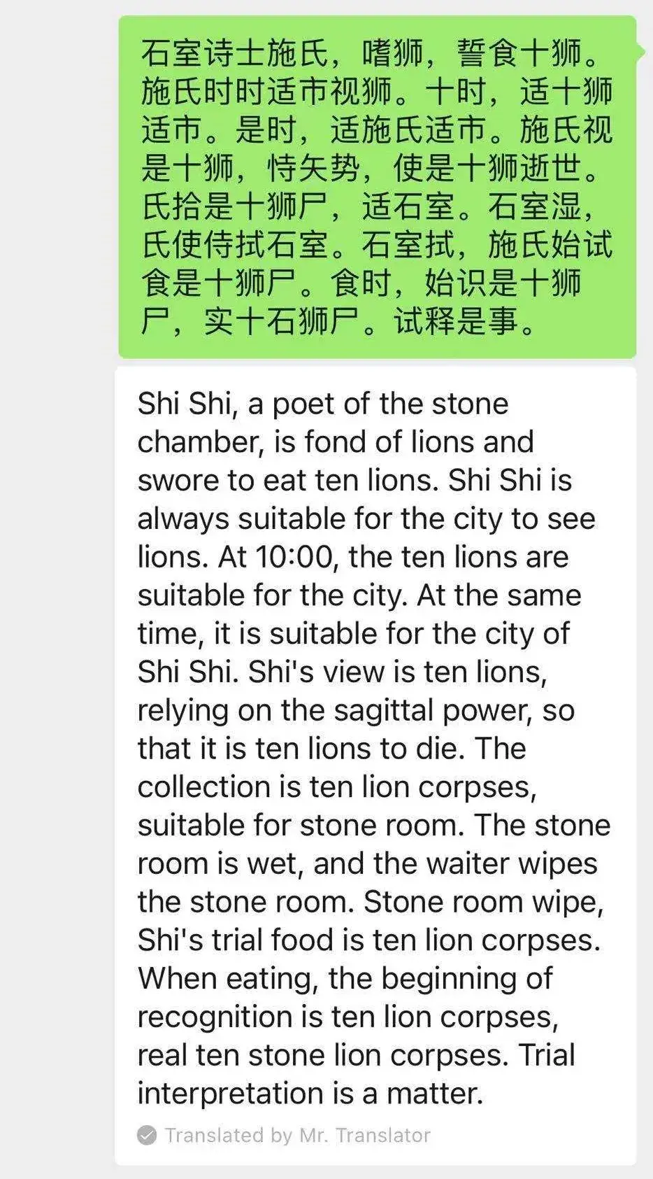 为了加大难度,机哥专门找了一篇特别的文言文《施氏食狮史》。