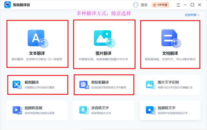 一款功能强大的专业翻译软件,支持文本翻译,图片翻译,文档翻译,截图翻译,图片文字识别,音视频转文字等等,特别适合需要经常看国外的学术文献的同学,翻译字数不限,可以全文复制翻译,不用担心翻了一半还得重新翻译