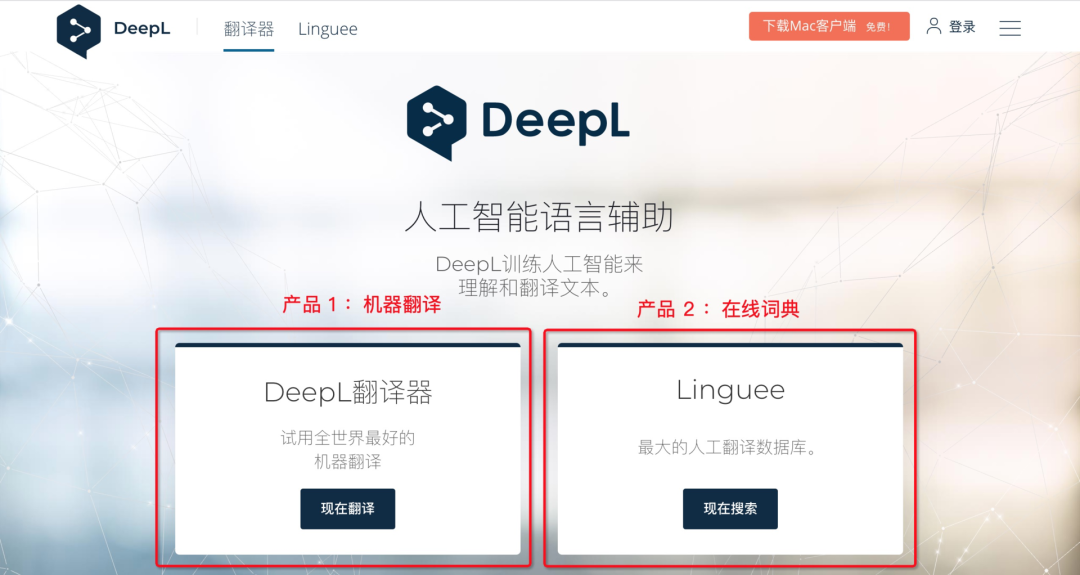 原来 DeepL 成立于语言开发人工智能的深度学习公司 2009 年,也走过了 10 年头,以前 DeepL 公司名叫 Linguee,在欧洲许多国家,如法国、德国、西班牙等国家,提供类似有道词典的在线查词服务。后来,在 2017 基于机器翻译系统的年度推出DeepL翻译器,公开免费使用,其翻译质量优于同期产品。
