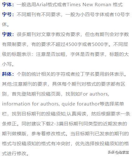 SCI在论文写作中,不同的提交杂志有不同的提交格式要求,但期刊也是如此。今天的文章总结了30多本书SCI期刊的提交说明总结了以下写作细节。让我们看看这些SCI你注意到写作过程中的细节了吗?