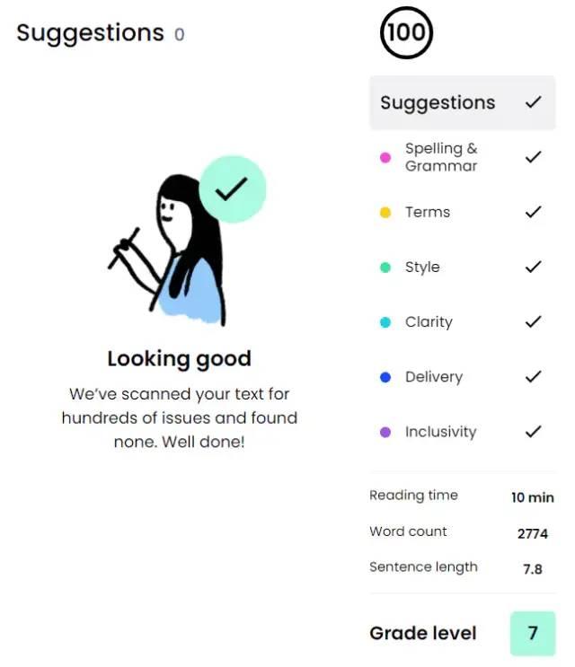 ProWritingAid是Grammarly的头号竞争对手,除了语法检查和拼写检查功能外,免费版的ProWritingAid还向用户提供风格建议。