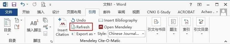 假装写文章…引用文献调出光标处Mendeley的Word插件: