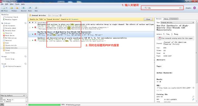 Mendeley基本文献管理模式和Endnote、Zotero以及Papers差不多。先爆一个Mendeley缺点:字体太小(很多人都在抱怨)。通过对以上文献管理软件的仔细比较,Mendeley字体真的很小,看起来很难。Mendeley短,小编,我也想公正夸夸Mendely的好。“ 好 ” 在搜索功能。如果文献量巨大(小编旁边很多大神的文献储量超过1万),即使分类细致完整,也难免需要搜索。Mendeley对于PDF文件的强大识别能力在于Mendeley输入关键词搜索的范围不仅仅是标题、作者、年龄等。PDF搜索全文(据我所知,其他文献管理软件是不可能的,至少以上不可能。如有不同意见,请拍砖)。