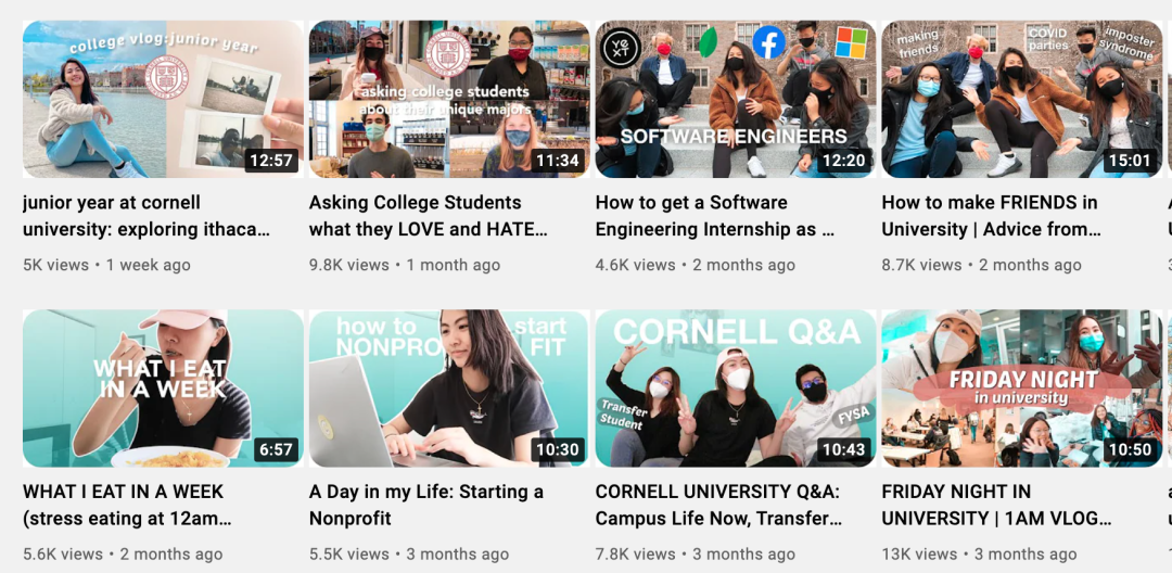 她经常分享学习标准化的经验和技能,还有如何选择学校申请美本,藤校申请面试和住在康奈尔大学等视频,适合高中党!