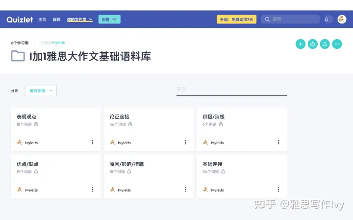 当然,只是有Quizlet这个工具是不够的,你还需要一个创建好的雅思单词库,我已经把这个雅思词汇的词库创建好,可以免费把链接分享给大家,大家获取链接后直接使用就好。