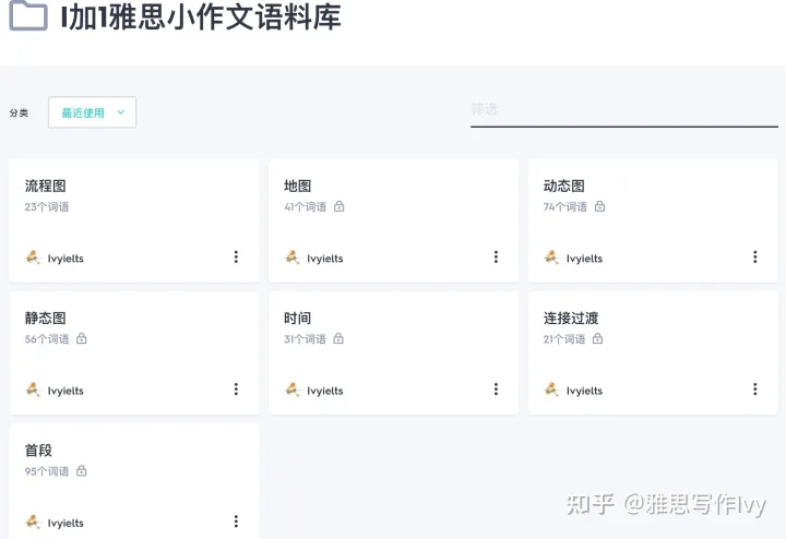 在创建这个单词库时,我把雅思写作词汇分成了三个文件夹,分别是:小作文语料库,大作文基础语料库和大作文话题语料库。