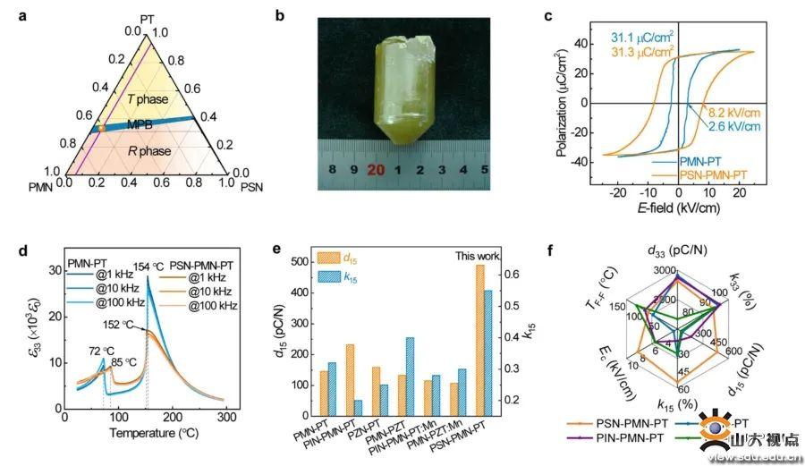 具有超高压电性的弛豫铁电单晶自被发现以来便引起研究者的广泛关注。铁电材料中的高压电响应和强矫顽电场均是至关重要的性能参数,分别保证其在机电器件中实现高工作效率和宽工作场下的稳定应用。然而,同时实现压电性和矫顽电场的增强非常具有挑战性。