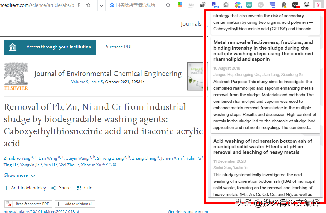 Scholarcy | Research Paper SummarizerLibKey NomadWIS Library Search AssistantPaperPanda论文一键下载EndNote Click (Kopernio)IrisSearch知网研学文献采集助手ReadCube PapersEZProxy RedirectPaperpile ExtensionLibrary Access其中很多插件都是SCI-Hub的不同链接,不过有的已经失效了,需要大家自己甄别。